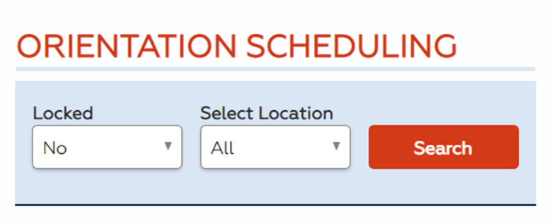 - To search for only locked or unlocked orientations and/or orientations in a specific location, make your selections in the dropdown menus and click Search. The list refreshes based on your selections.