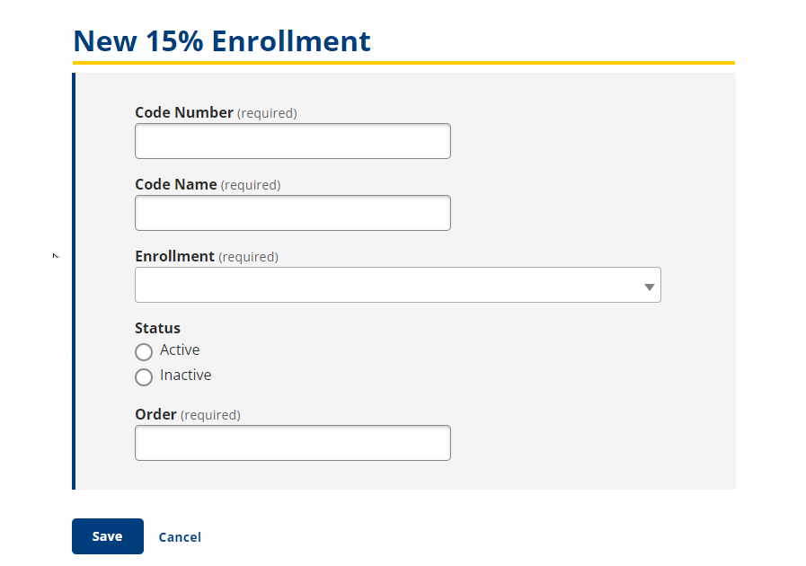 - Status: Options; Select Active or Inactive to determine if the enrollment will display in the system.