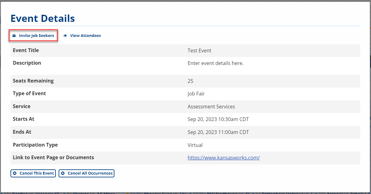 Once all job seekers are selected, click Send Invites. An invite is sent to each job seeker.